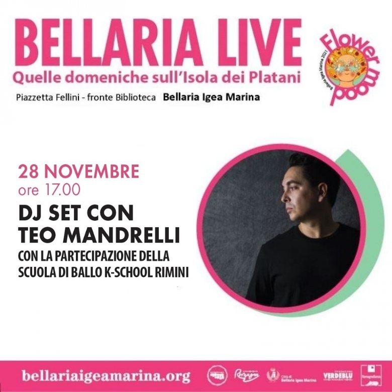 Un pomeriggio dedicato alla musica e alla danza con dj Teo Mandrelli alla consolle e i ballerini della scuola K-school, presso piazzetta Fellini davanti alla Biblioteca Comunale A.Panzini di Bellaria centro.
