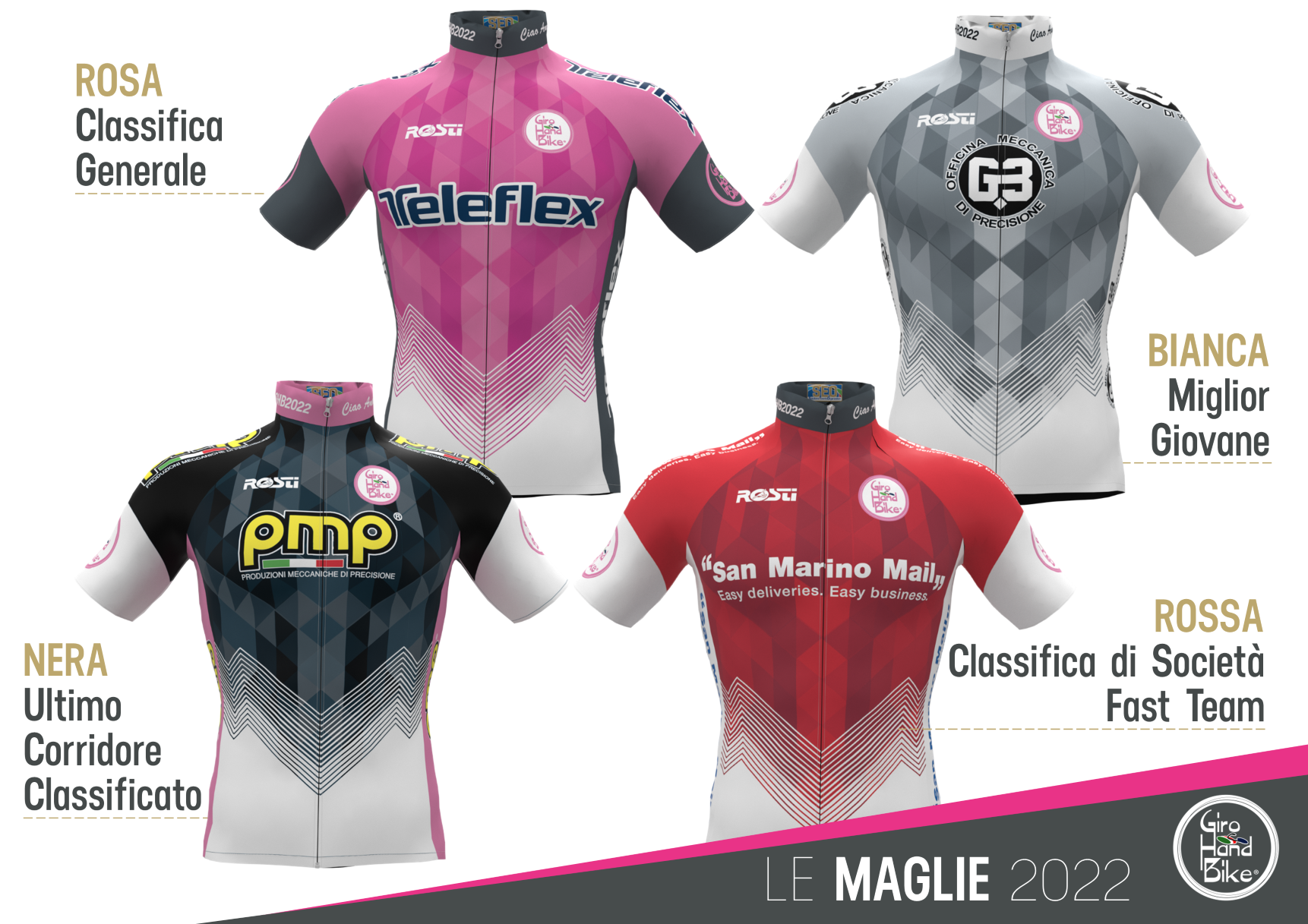 Madrina della 12° edizione sarà la cantante Luisa Corna, entusiasta Testimonial del Giro Handbike. Le nuove maglie invece saranno firmate da Damiano Rizzo, ispirate nella loro realizzazione all’idea di velocità: maglia rosa TELEFLEX, maglia bianca G3 OFFICINE MECCANICHE, maglia rossa SAN MARINO MAIL, maglia nera PMP offerte dagli sponsor dell’evento.