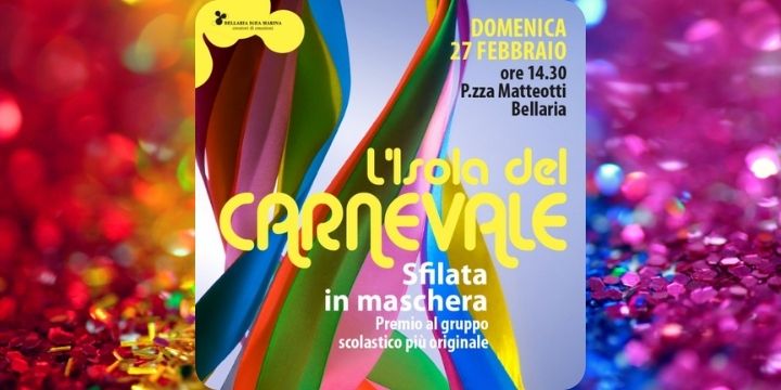 Bellaria Igea Marina torna a festeggiare il Carnevale con la nuova edizione intitolata “L’Isola del Carnevale”, in programma per domenica 27 febbraio 2022, con ritrovo dei gruppi mascherati presso Piazza Matteotti alle ore 14.30.