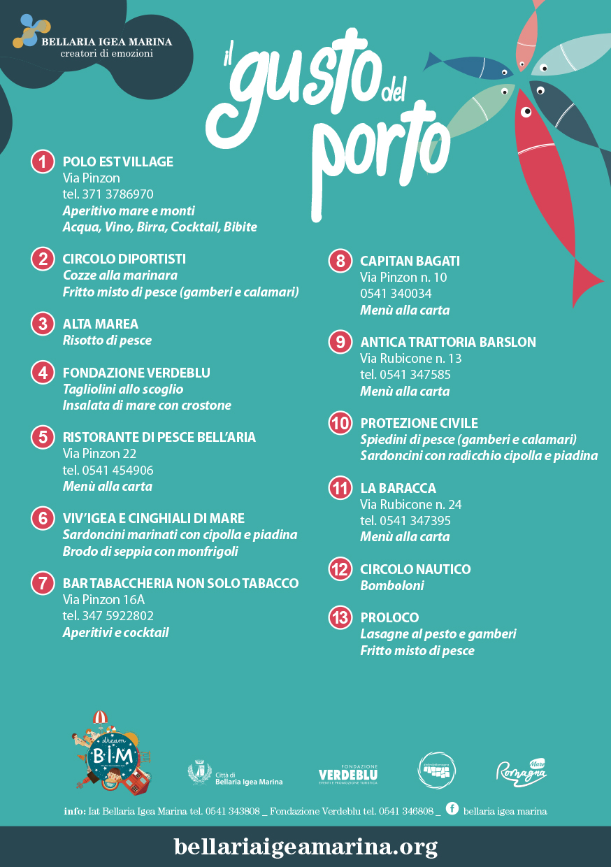 Un week end che ci porta alla scoperta della nostra tradizione marinara nella suggestiva atmosfera del porto canale di Bellaria Igea Marina! Celebreremo le specialità di pesce tradizionali con stands gastronomici e momenti di spettacolo e divertimento sul porto canale di Bellaria Igea Marina con un percorso gastronomico tutto da gustare tra specialità di pesce, musica, intrattenimento, cultura e spettacolo!