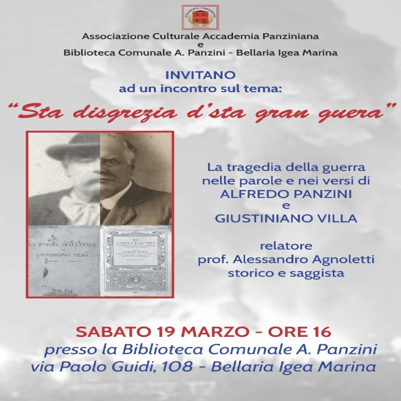 Il Dott. Alessandro Agnoletti, Direttore della Biblioteca comunale, illustrerà i punti di vista sulla Guerra di due illustri uomini dello scorso secolo: Giustiniano Villa e Alfredo Panzini.