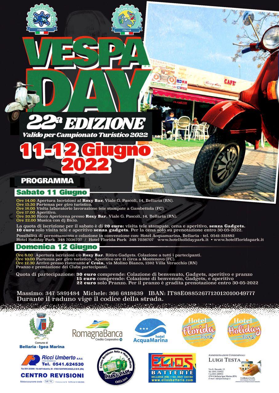 Sabato 11 e domenica 12 giugno: appuntamento con la 22° edizione del Vespa Day insieme agli amanti della Vespa per un week end di scoperta del nostro territorio.