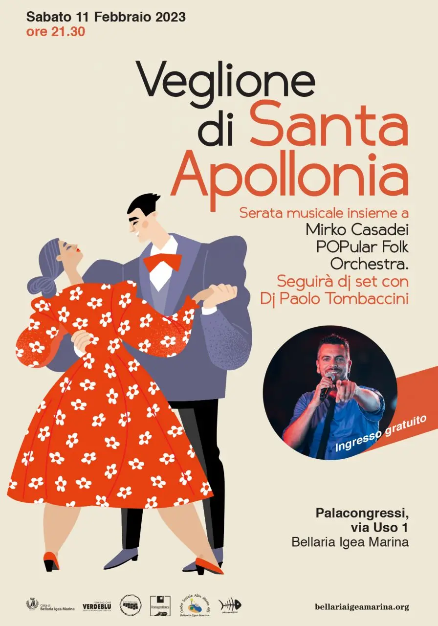 Torna il tradizionale Veglione di Santa Apollonia: si riapre la pista da ballo in modalità Veglione in occasione della festa patronale della città dedicata alla Santa Apollonia per festeggiare con la musica di Mirko Casadei POPular Folk Orchestra e dj set della Saraghina Group con dj Paolo Tombaccini.
