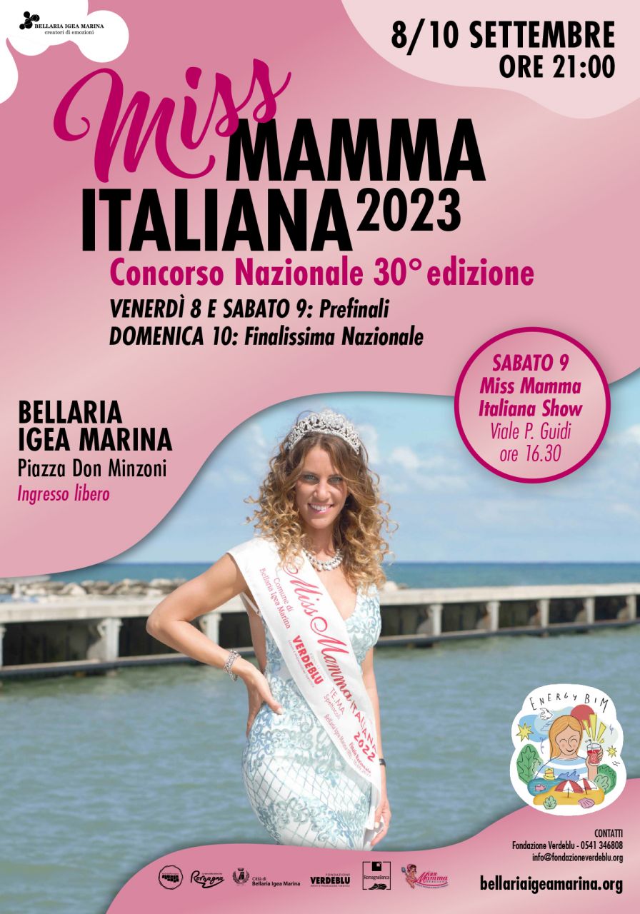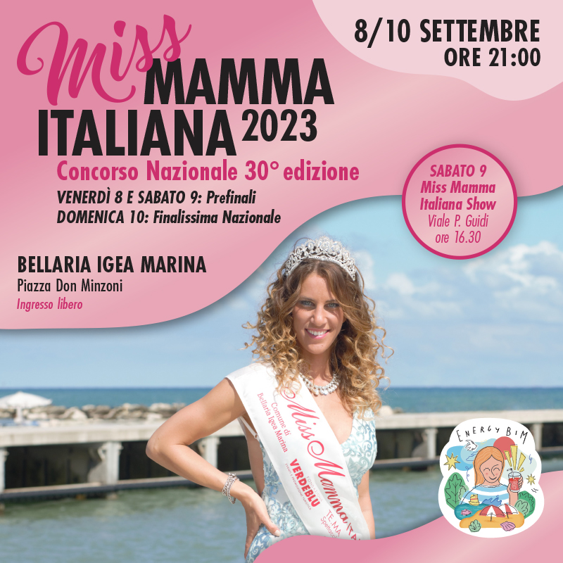 Dal 8 al 10 settembre 2023, torna a Bellaria Igea Marina Miss Mamma Italiana - 30° edizione per celebrare la bellezza, il talento e la simpatia delle mamme italiane!