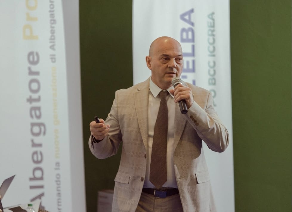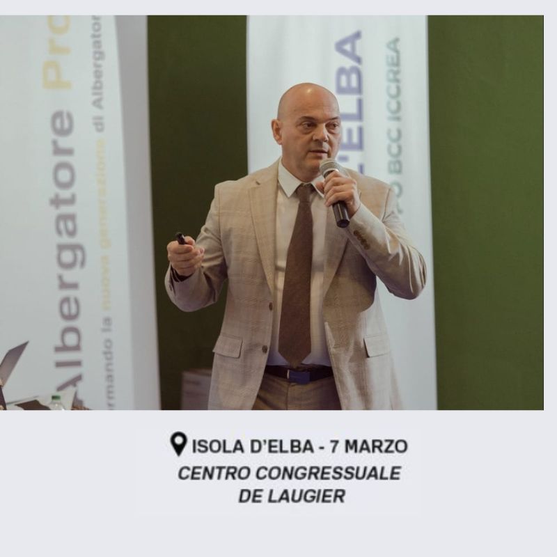 Paolo Borghesi Presidente di Fondazione Verdeblu di Bellaria Igea Marina, ospite alla prima tappa del tour di Albergatore Pro presso il Centro Congressuale De Laugier all’Isola d’Elba.