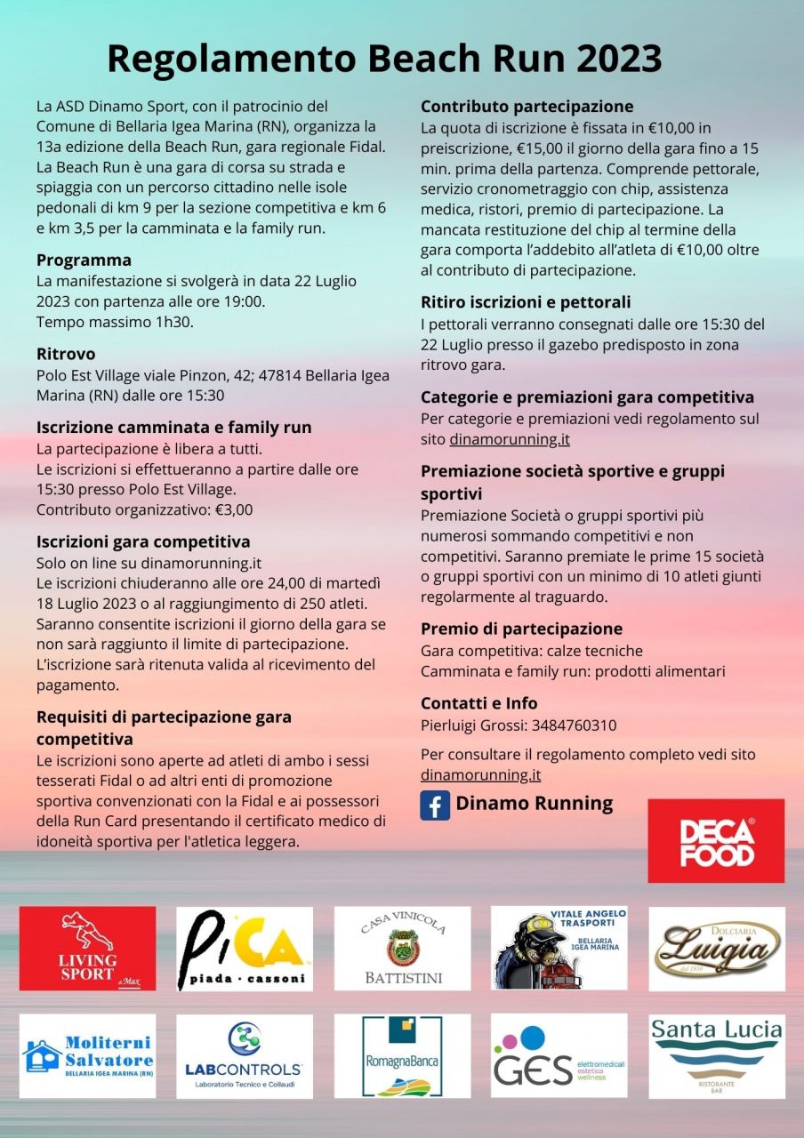 REGOLAMENTO: dinamorunning.it/regolamento-beach-run-2023/