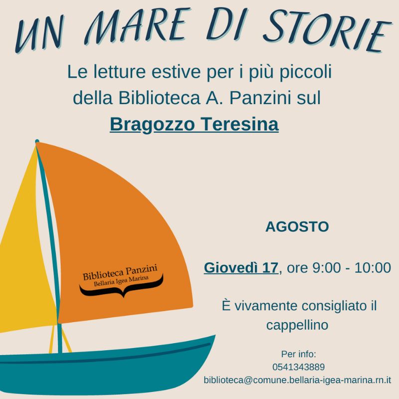 Letture estive per i più piccoli, organizzate dalla Biblioteca A. Panzini sul Bragozzo Teresina (Porto canale lato Igea Marina, all'altezza dell'edicola situata in viale Pinzon 16)
