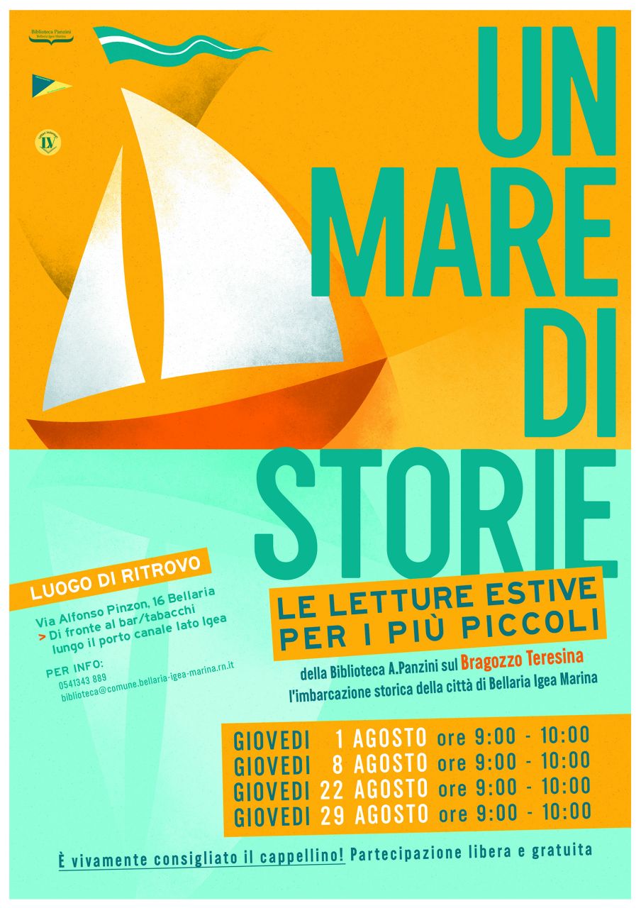 Letture estive per i più piccoli, organizzate dalla Biblioteca A. Panzini sul Bragozzo Teresina (Porto canale lato Igea Marina, all’altezza dell’edicola situata in viale Pinzon, 16)