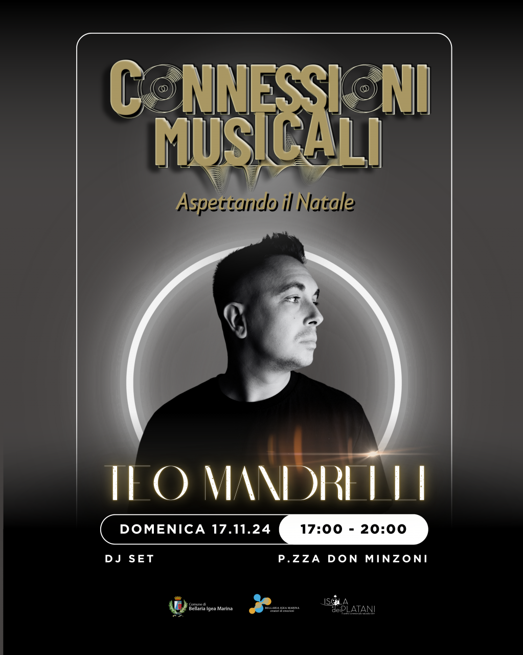 ►17 Novembre: TEO MANDRELLI, Dj set - piazza Don Minzoni Dj set dalle 17 alle 20.