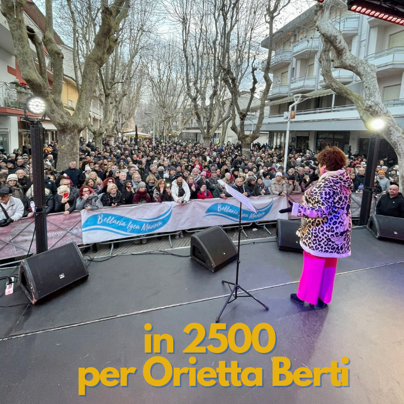 Grande successo a Bellaria Igea Marina con il Live Show di Orietta Berti che, lunedì 6 gennaio, ha raccolto sotto al palco della Stazione (viale P. Guidi) un pubblico di 2500 persone provenienti da tutta Italia, per festeggiare assieme l’Epifania 2025. Un’ottima conclusione del ricco palinsesto di eventi, targato “BIM Christmas”, organizzato da Fondazione Verdeblu, l’Amministrazione Comunale e la direzione artistica di Andrea Prada, che dal 1 dicembre ha accompagnato l’intero periodo festivo con tanti eventi: dai pomeriggi con i content creators più amati dalle giovani generazioni, agli spettacoli musicali e acrobatici itineranti, fino al Capodanno diffuso con i sette palchi musicali e il grande successo dell’Epifania con Orietta Berti.