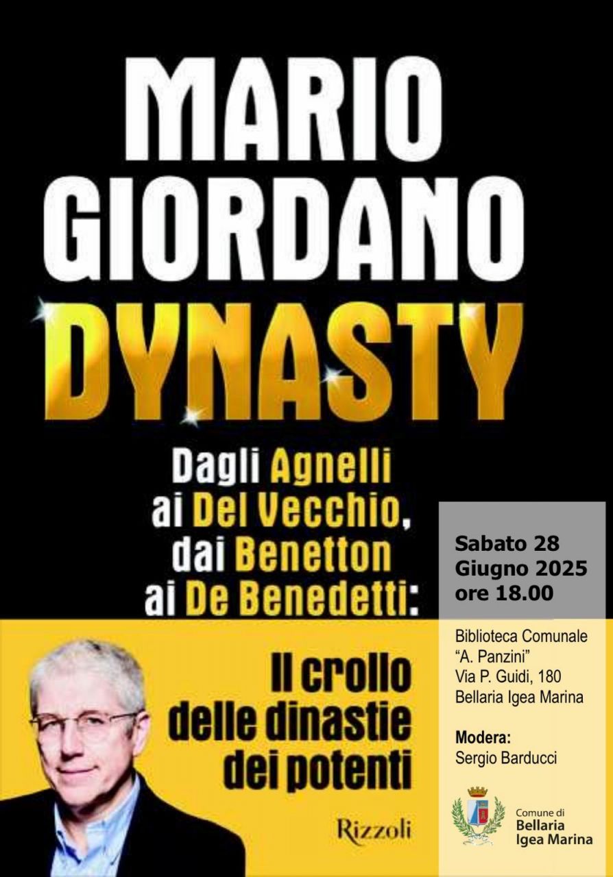 Mario Giordano sarà ospite della Biblioteca Comunale Alfredo Panzini, dove presenterà il suo ultimo libro "Dinasty".