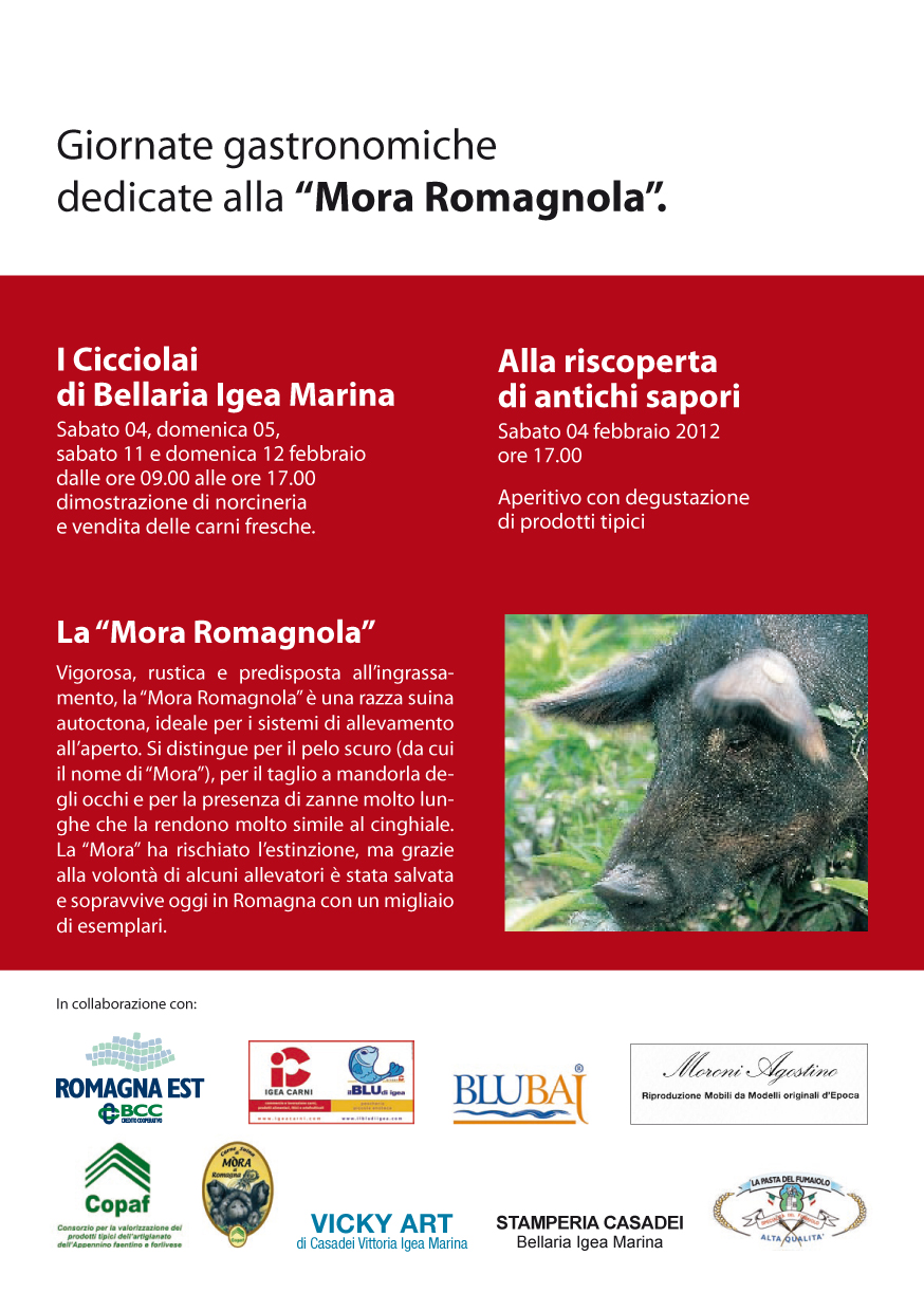 A febbraio le tradizionali giornate gastronomiche dedicate alla gustosissima Mora Romagnola con l'Osteria La Mora in Piazza Matteotti, dimostrazione di norcineria e vendita di prodotti tipici.