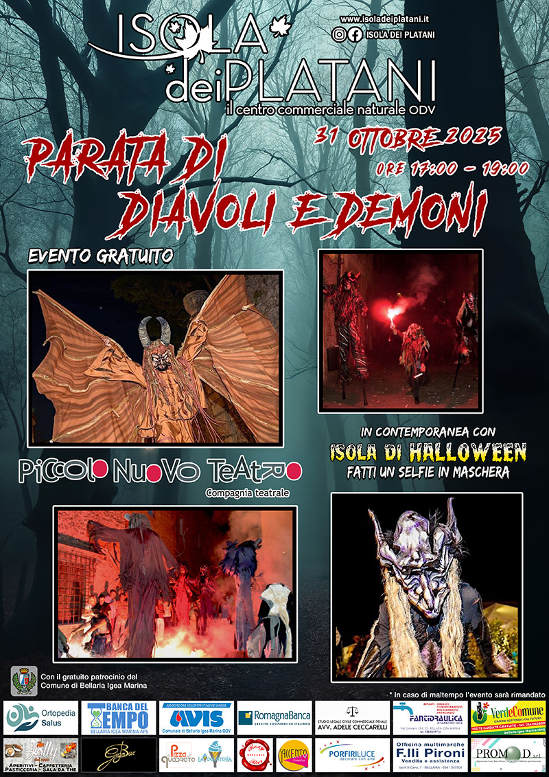 In contemporanea si svolgerà l'iniziativa "Isola di Halloween" - con caramelle nei negozi "dolcetto e scherzetto"; "Posta e Vinci": fai un selfie in maschera davanti alle vetrine dei negozi, posta sulla pagina facebook dell'Isola dei Platani e vinci!