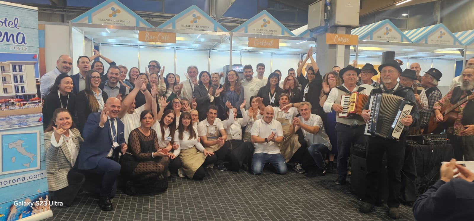 Dal 7 al 9 novembre la delegazione composta da Operatori turistici di Bellaria Igea Marina, Visit Romagna e lo Staff di Fondazione Verdeblu, hanno rappresentato la propria destinazione turistica presso l’Expo francese, con 300 espositori provenienti da tutto il mondo. Lo Stand della Romagna ha ricoperto un ruolo particolarmente importante, diventando fulcro dell’animazione della HALL 2, nella quale è stato allestito uno spazio dedicato alla Romagna e Bellaria Igea Marina di oltre 500mq comprendente, oltre agli Stand degli operatori turistici partecipanti, “Piazza Italia”, l’angolo Bar, la Gelateria artigianale, la Pizzeria al taglio con pizze e piadine romagnole ed il Ristorante Italiano particolarmente apprezzato dai visitatori esteri. In tavola sono stati proposti vari piatti tipici della cucina italiana tra cui, per citarne alcuni: lasagne, primi piatti di pesce, fritto misto di pesce, prosciutto crudo, squacquerone e piadina, il tutto accompagnato dal buon Sangiovese romagnolo di Case Marcosanti; si sono quantificati sui 140 kg di pesce cucinato, 60 kg di prosciutto, 40 kg di squacquerone e circa 300 piadine.