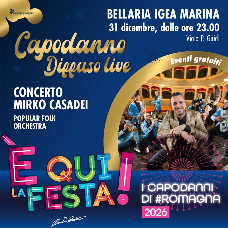 Vivi il Capodanno Diffuso Live a Bellaria Igea Marina con una serata speciale- per festeggiare l'arrivo del nuovo anno tutti insieme,