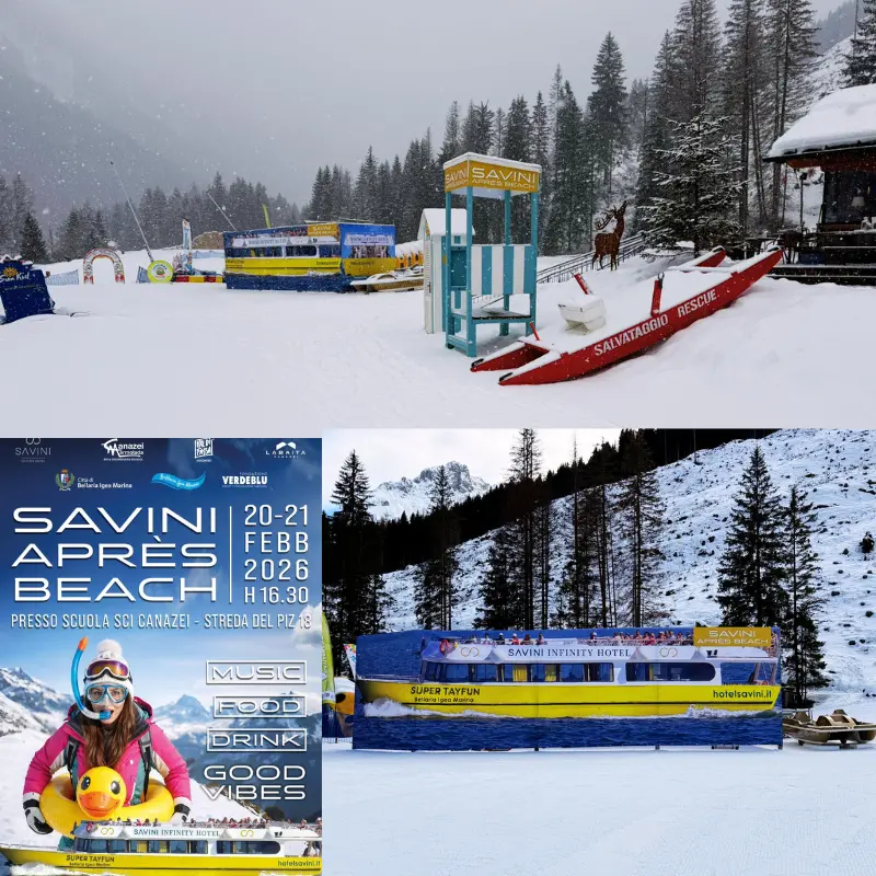 Da venerdì 20 a domenica 22 febbraio, si svolgerà a Canazei (TN), la prima “SAVINI APRèS BEACH”: un’iniziativa ideata da Claudio Guerra dell’Hotel Savini, che coinvolgerà la Città di Bellaria Igea Marina. Nello stand allestito direttamente sulla pista da sci, l’allestimento dedicherà un corner promozionale, curato da Fondazione Verdeblu, per la città Panziniana, con maxi schermi che riprodurranno video emozionali di Bellaria Igea Marina e dove saranno distribuite brochure informative.
