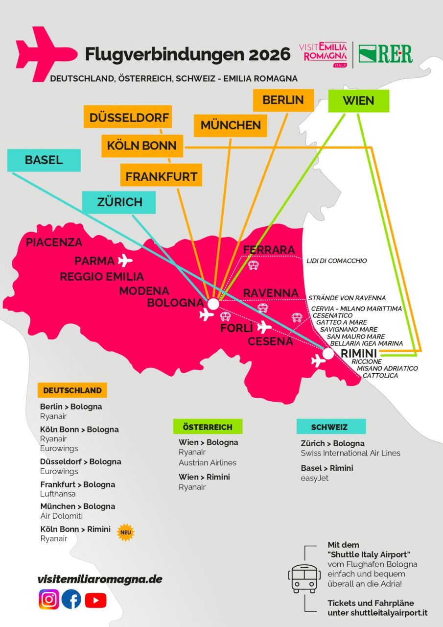 Ecco i collegamenti aerei previsti per la stagione 2026 tra i paesi dell’area DACH (Germania, Austria e Svizzera) e la nostra Regione!