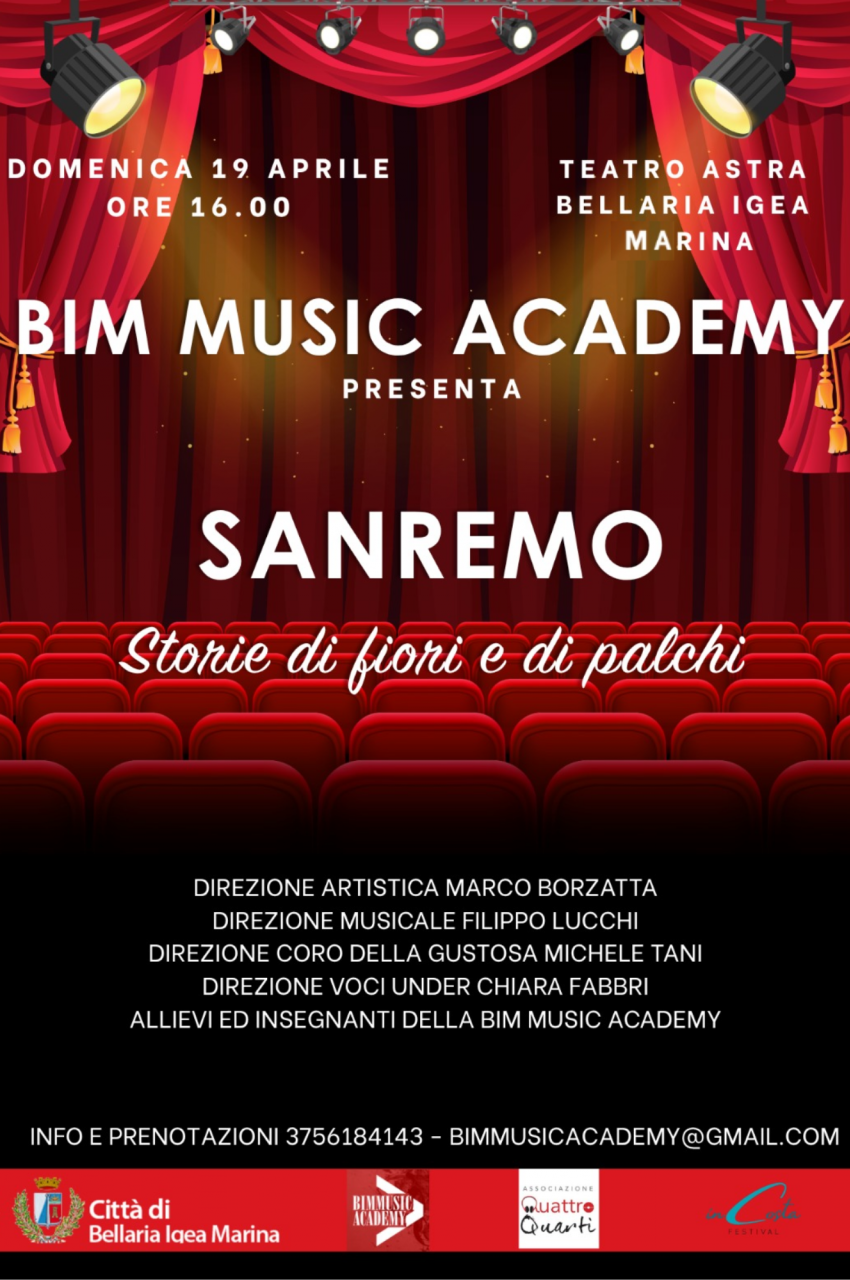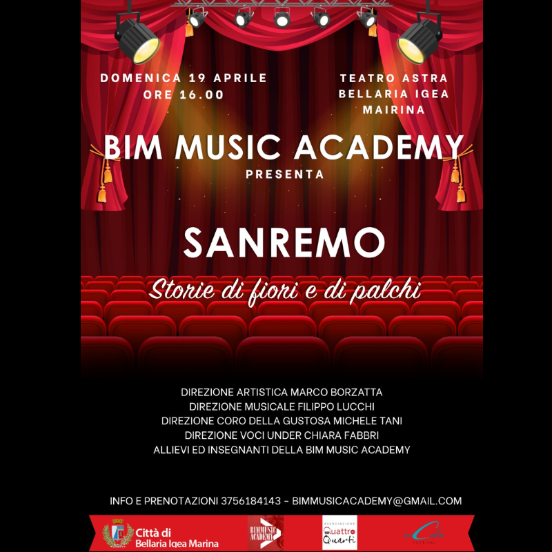 L'Associazione Quattro Quarti aps e InCosta Club portano sul palco del Teatro Astra di Bellaria Igea Marina tramite la scuola di musica Bim Music Academy: Sanremo storie di fiori e di palchi.